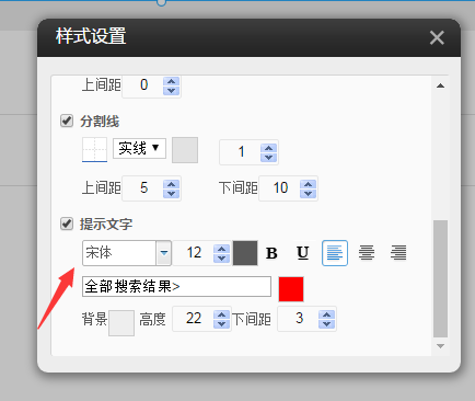 12.在建站编辑器中,拖入“站内搜索”插件,点击样式设置,在样式5、6、7、8、9中的设置项中增加“搜索范围”的设置项,如图所示: